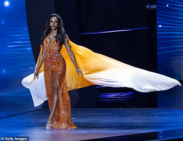 Videos captured Dr. Gabrielle Henry walking confidently along the runway in Bangkok on Wednesday night, dressed in her shiny orange outfit, when she unexpectedly stepped off the stage and fell to the ground.